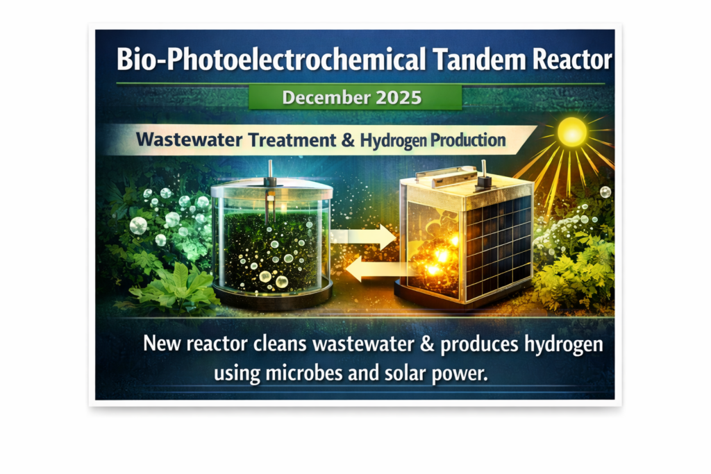 The BPTR pairs a microbial bioelectrode to degrade wastewater pollutants with a solar-powered photoelectrode for hydrogen production in neutral conditions, tackling water purification and green fuel needs simultaneously.